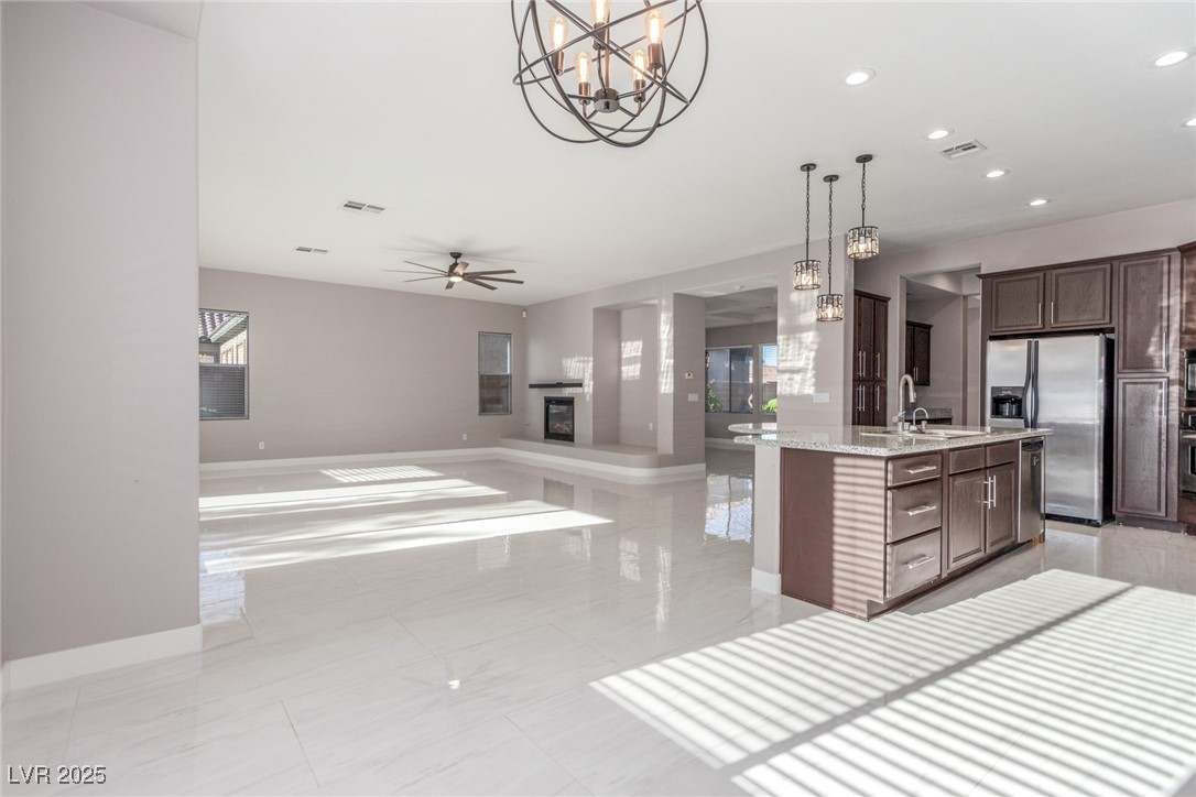 MAJOR PRICE REDUCTION -- PRICED TO SELL! Now priced well under comps, this is the BEST VALUE IN THIS SOUGHT-AFTER GATED COMMUNITY. Includes 1-YEAR HOME WARRANTY. Elegant TOLL BROTHERS SINGLE-STORY ON LARGE LOT with TRAY CEILINGS, MARBLE-STYLE TILE & DESIGNER LIGHTING across nearly 3,900 SQ FT. CHEF'S KITCHEN: GRANITE, STAINLESS, OVERSIZED ISLAND, PANTRY & BUTLER'S AREA. FORMAL DINING w/ COFFERED CEILING & FAMILY ROOM W/ FIREPLACE. PRIMARY SUITE w/ SITTING AREA, PATIO ACCESS & SPA BATH: DUAL VANITIES, GARDEN TUB & WALK-IN SHOWER. Fresh updates: NEW CARPET, NEUTRAL PAINT, JACK & JILL BATH, OFFICE NICHE & LAUNDRY W/ SINK. OUTDOOR LIVING: COVERED PATIO, FOUNTAIN, TURF & EASY-CARE LANDSCAPING. Parking for multiple cars: EXTRA-LONG DRIVEWAY, GATED CARPORT & 3-CAR GARAGE. Quiet GATED COMMUNITY near schools, shopping & dining. TURNKEY & MOVE-IN READY -- PERFECT FOR ENTERTAINING INDOORS & OUT. HOMES LIKE THIS RARELY HIT THE MARKET AT THIS PRICE -- ACT FAST! BEST $/SQ FT VALUE IN THIS COMMUNITY.